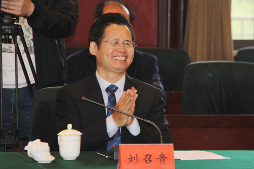 严启方副市长在致辞中说,刘召贵博士是家乡的骄傲。投资家乡、治理家乡既是刘召贵博士回报家乡、支持家乡的举动,也是与家乡同心同向的一种合作。他表示,要努力创造条件,让刘召贵博士在家乡大展宏图,与家乡实现互利多赢。
