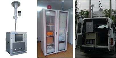 图1 太阳成tyc7111ccEHM-X200大气重金属在线分析仪图片(从左到右分别为仪器主机、站房机柜上的仪器和车载仪器)